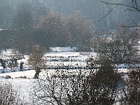 Blick vom Eingang auf die schneebedeckte Ölgangsinsel.